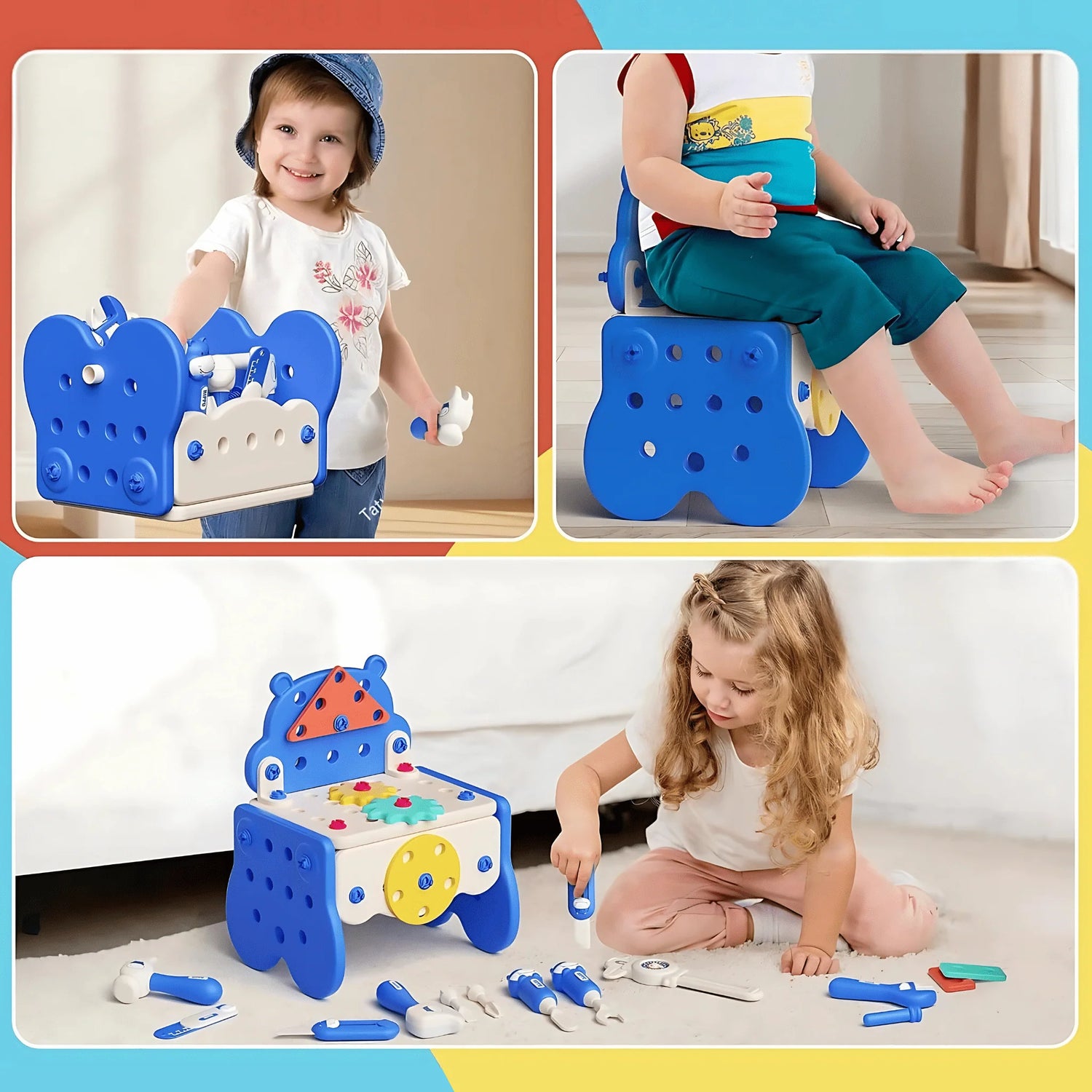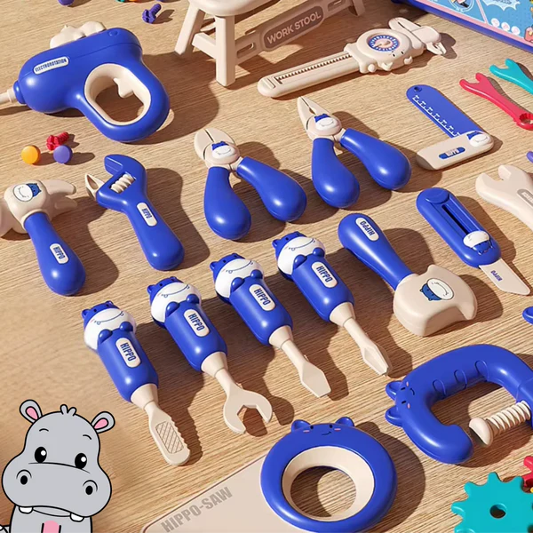 Med barnsäkra verktyg som borr, såg och skiftnyckel får barnen känna sig som riktiga byggproffs – utan risker.